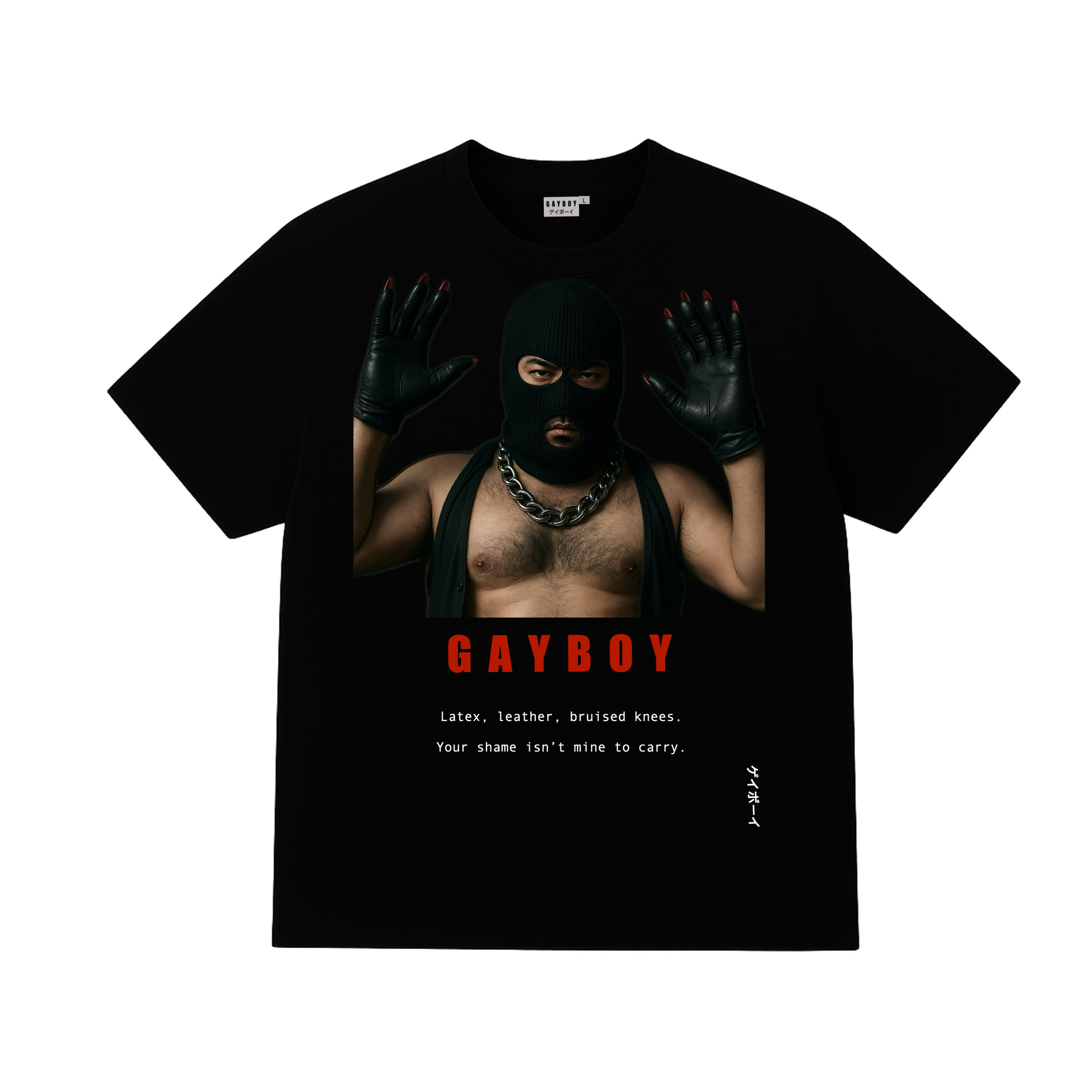Back includes Japanese “ゲイボーイ” printed across the shoulders.